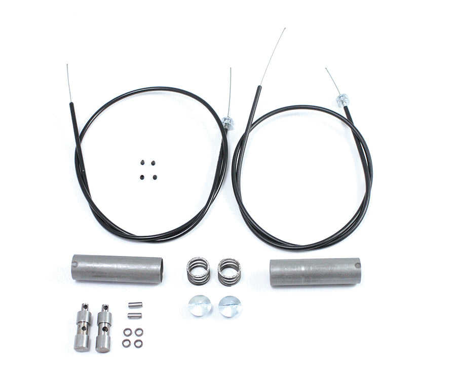 Cable kit is for two sides with push throttle. Kit includes all internal parts. Grips are not included. Features a vinyl cable casing.