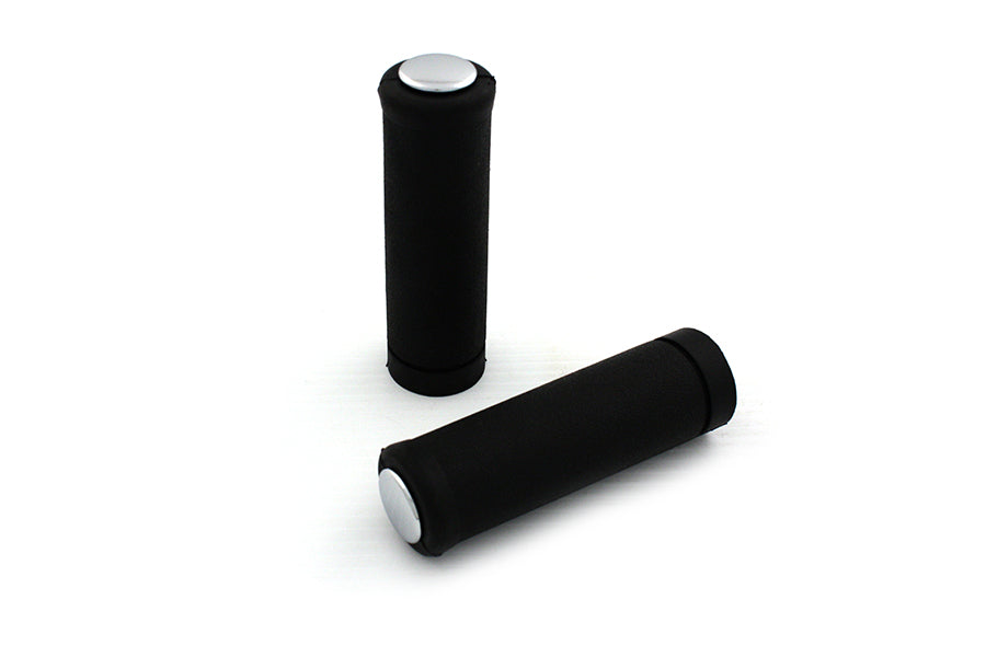 | Features a molded radial rubber design with chrome accent plug ends. These stock grips include chrome plugs in 1-1/8 and 1 for 1974-up models. Stock OE replacement type. Sold in a quanity of 2. These are replacement grips only. Requires installer to reuse the stock nylon throttle tube. |