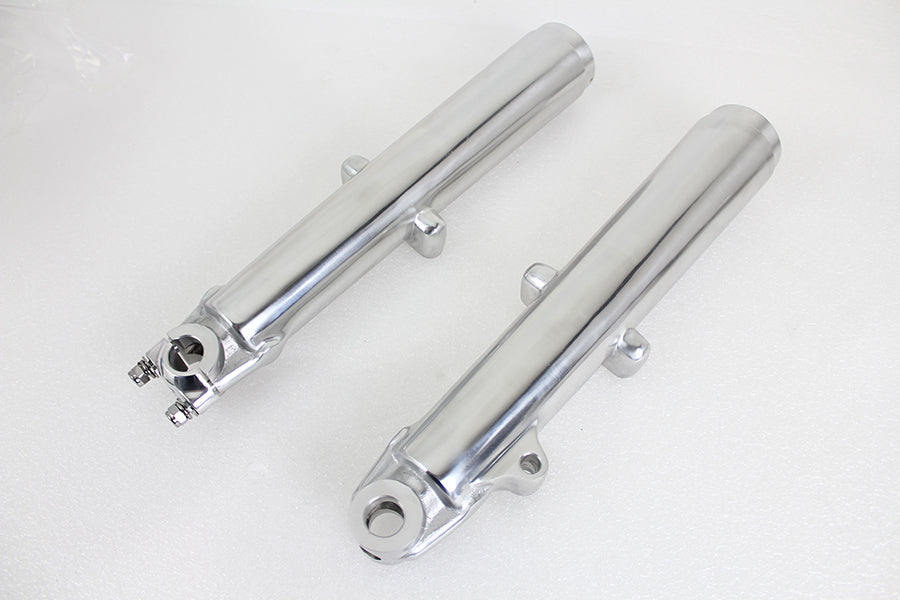 | Polished right and left 41mm Glide fork slider set for the left side drum brake. Lower leg set accepts 1977-1984 type seals. The tube fits directly into the leg without bushings. *NOTE: Bushings included. Sold as set of two. *NOTE: Fork legs accept the later model double lip seal related seal washers and snap rings. |